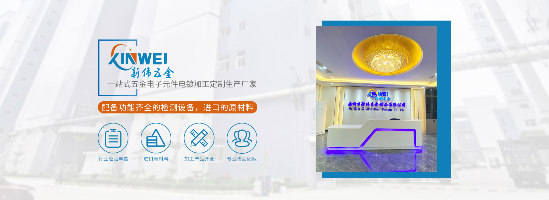 惠州市新偉五金制品有限公司(簡稱:新偉五金)坐落于中國廣東省惠州市,成立于2010年,是一家專業(yè)電鍍各種高品質(zhì)功能性的環(huán)保五金電子元件供應商,公司已通過ISO9001:2015及IATF16949:2016質(zhì)量體系認證。客戶至上,品質(zhì)至上,承蒙新老客戶的信賴,公司發(fā)展迅速,廠房車間面積10000平方米,現(xiàn)有員工200名,并擁有一批從事電鍍行業(yè)10年以上、經(jīng)驗豐富的技術骨干,為客戶解決許多疑難問題,另有一支品質(zhì)工程小組,專業(yè)檢測產(chǎn)品品質(zhì),杜絕不良品外流,深受客戶好評。